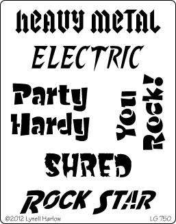 Guitar Words stainless steel embossing template from Dreamweaver Stencils. Template measures about 3.5" x 4.5".