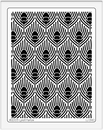 Peacock Feather Background stainless steel embossing template from Dreamweaver Stencils. Template measures about 5.5" x 4.25".
