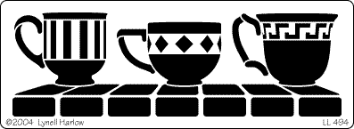 Teacups brass embossing template from Dreamweaver Stencils. Template measures about 5.5" x 2".
