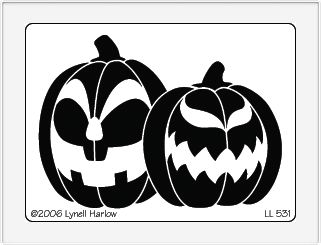 Jack o'lanterns brass embossing template from Dreamweaver Stencils. Template measures about 3.75" x 2.75".