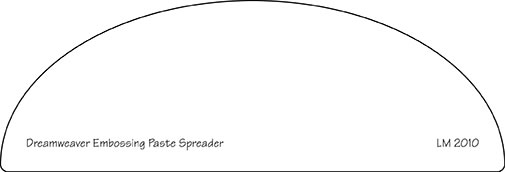 Dreamweaver Paste Spreader stainless steel embossing template from Dreamweaver Stencils. Template measures about 2.25" x 7". This new, larger paste spreader is more manageable for the side open designs and large background stencils.