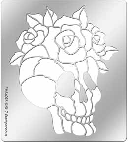 Rose Skull metal embossing template from Fran's Metal Stencils by Stampendous. Template measures 4.5" x 4".