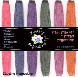 6 threads to match or printed patterned paper. You get 8.75 yards of each color! This collection includes: Raspberry, Blueberry, Grape, Forest Green, Berry and Pumpkin threads.