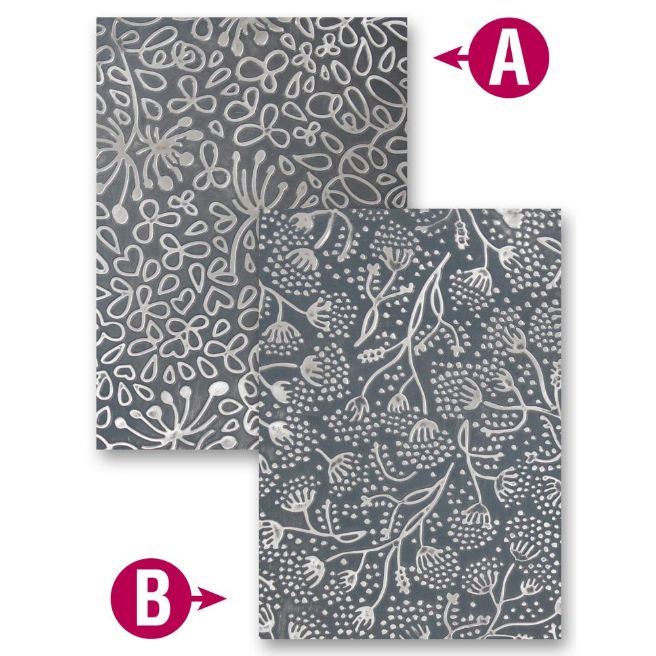 Spellbinders M-Bossabilities Folders - Two Designs. Twice the Value. Double your creativity with the new Spellbinders M-Bossabilities folders. Unique reversible embossing folders give you twice the value and more design options for detailed embossing and letterpress creations. embossing folders flip around to create two different looks! Spellbinders M-Bossabilities folders come in 2 sizes for all your paper crafting needs. This folder is A4 which is 5" x 7". Each folder has two designs - one on each side - for more versatility and value.